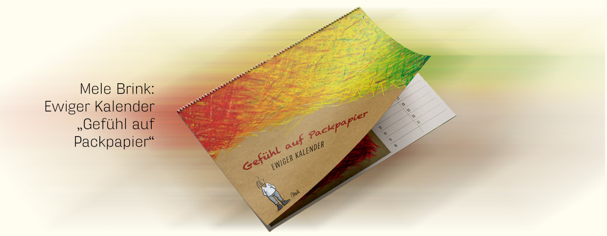 Zwölf Motive aus der Reihe „Gefühl auf Packpapier“ begleiten Sie Monat für Monat durchs Jahr. Dieser ewiger Kalender ist nicht auf ein bestimmtes Jahr festgelegt.